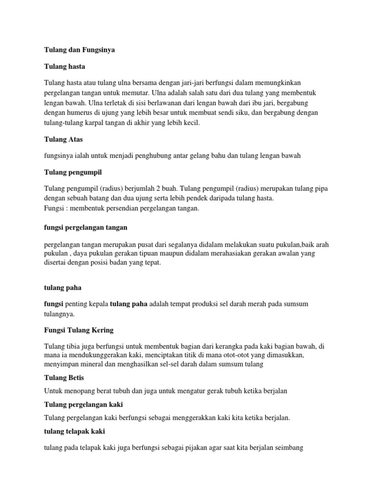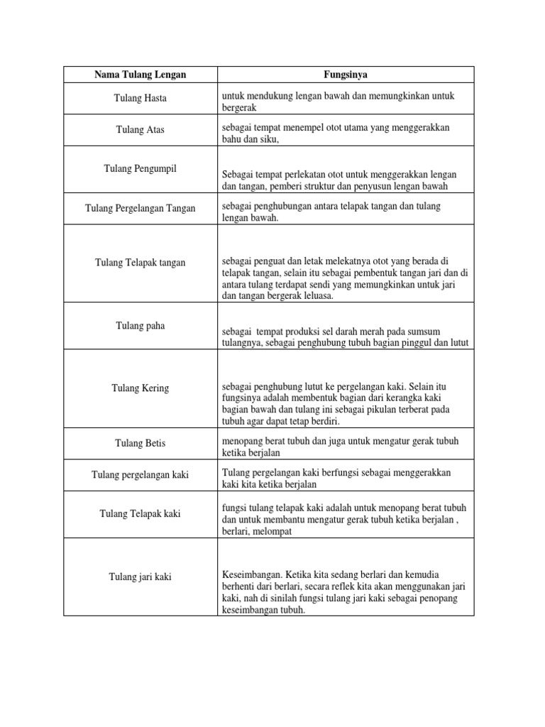 Kaki manusia merupakan salah satu anggota tubuh yang memiliki gerakan kompleks dan berperan dalam aktivitas harian. Imbangi dengan selalu mengkonsumsi makanan yang bernutrisi, untuk bisa membuat tulang telapak kaki selalu sehat. Tulang tidak beraturan selain ke tiga macam tulang. Apa fungsi dari tulang telapak tangan? Adapun fungsi tulang tengkorak adalah sebagai pelindung organ tubuh yang lunak. Fungsi tulang atas dan tulang pengumpil! Sebagai tulang yang menghubungkan antara tulang tungkai lengan bawah dengan tulang pada bagian telapak kaki. Mengetahui fungsi tulang telapak kaki merupakan hal yang penting, dimana anda dapat mengetahui kegunaannya dan juga apa saja risiko penyakit dan gejala yang akan ditimbulkannya. Fungsi tulang telapak kaki adalah untuk menopang berat tubuh dan untuk membantu mengatur gerak tubuh ketika berjalan , berlari, melompat. Setiap jari kaki memiliki tiga tulang kecil. Tulang hasta atau ulna merupakan tulang panjang di bagian medial lengan bawah sejajar dengan tulang pengumpil. Tulang ini memiliki bentuk seperti kubus. Kelas x sma pelajaran biologi kategori alat gerak.